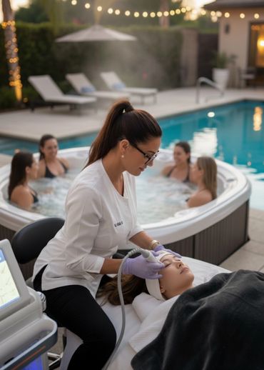 Get ready for the ultimate pampering, right at home! When I arrive, I will set up a cozy, spa like space where everyone can relax, and glow together. While each of you takes a turn, enjoying your personalized hydro Spa treatment, the rest of the girls can sip, laugh ,and unwind. It's self care, meets girl time! A little luxury, tons of fun, and skin that feels as good as the vibes.